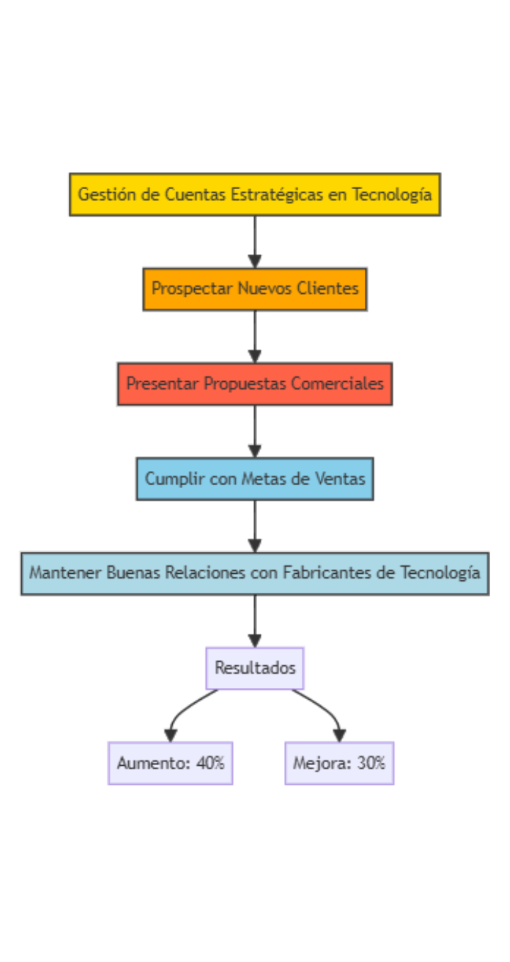 Soy un Key Account Manager con más de 3 años de experiencia en la gestión de relaciones comerciales y el desarrollo de soluciones personalizadas para clientes de alto valor. Mi enfoque se basa en identificar oportunidades de crecimiento, optimizar procesos y asegurar la satisfacción del cliente. He gestionado cuentas en sectores como tecnología, software y servicios empresariales, logrando un aumento significativo en la retención de clientes y un incremento en ingresos anuales.